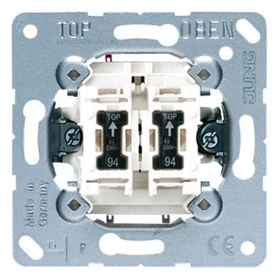 Механизм выключателя 2-клавишного Jung Коллекции JUNG, с подсветкой, скрытый монтаж, 505KOU5